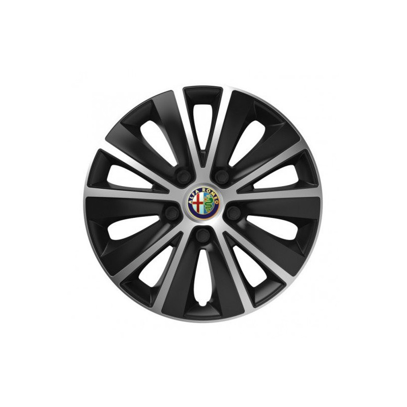 Puklice 14 RAPIDE silver and black pre Alfa Romeo na ocelové disky. Pre kolesá o veľkosti R14 so živicovými samolepkami Alfa Romeo.Destinatar :