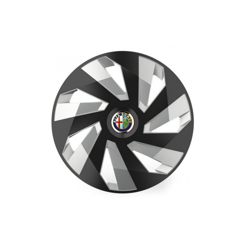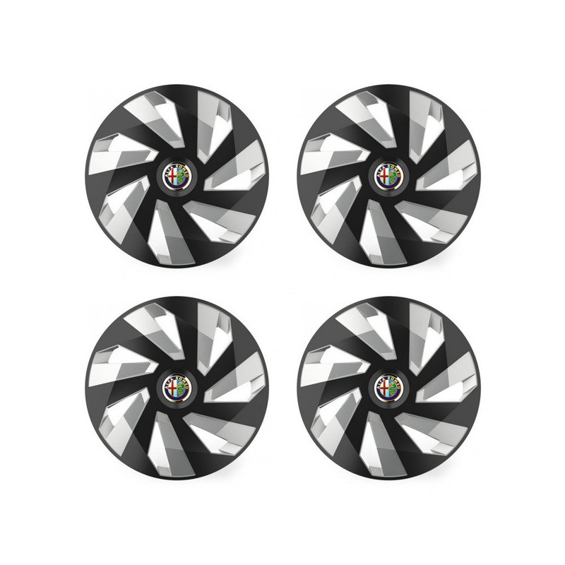 Puklice 14 Vector RC black and silver pre Alfa Romeo na ocelové disky. Pre kolesá o veľkosti R14 so živicovými samolepkami Alfa Romeo.Destinatar :