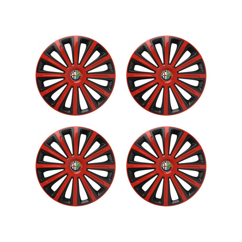 Puklice 15 TREND red and black pre Alfa Romeo na ocelové disky. Pre kolesá o veľkosti R15 so živicovými samolepkami Alfa Romeo.Destinatar :