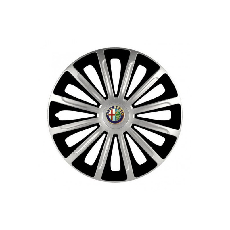 Puklice 15 TREND silver and black pre Alfa Romeo na ocelové disky. Pre kolesá o veľkosti R15 so živicovými samolepkami Alfa Romeo.Destinatar :