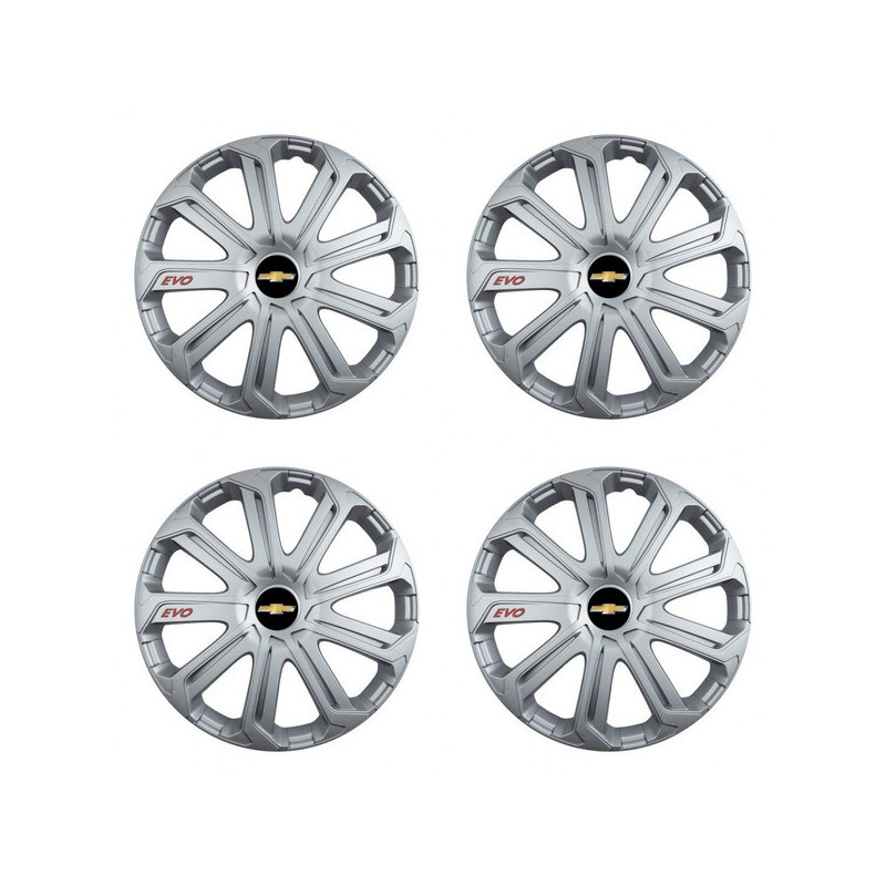 Puklice 14 Evo silver pre Chevrolet na ocelové disky. Pre kolesá o veľkosti R14 so živicovými samolepkami Chevrolet.Destinatar :