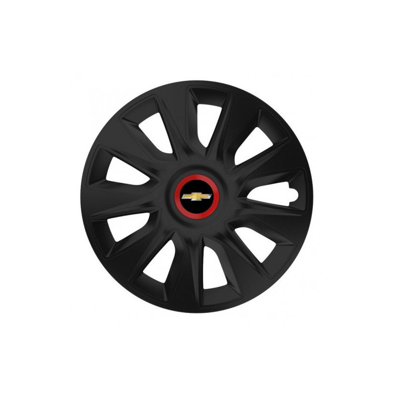 Puklice 14 STRATOS RR black pre Chevrolet na ocelové disky. Pre kolesá o veľkosti R14 so živicovými samolepkami Chevrolet.Destinatar :