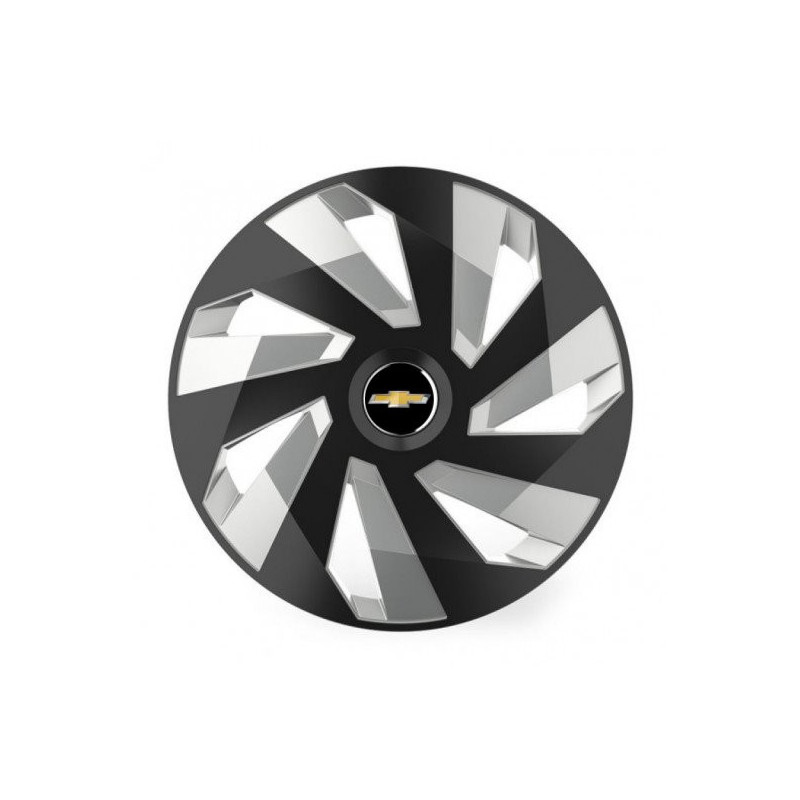 Puklice 14 Vector RC black and silver pre Chevrolet na ocelové disky. Pre kolesá o veľkosti R14 so živicovými samolepkami Chevrolet.Destinatar :