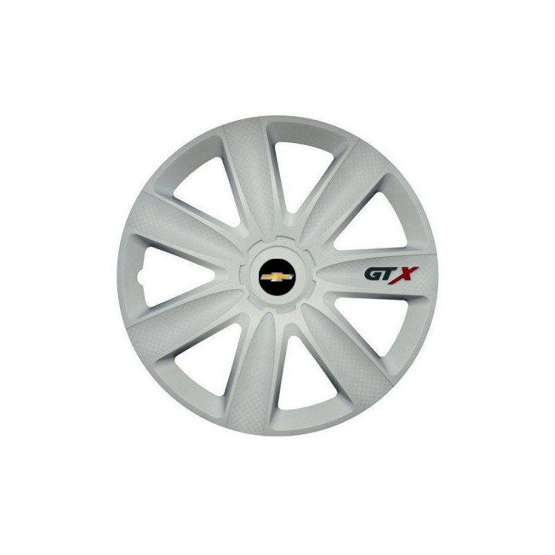 Puklice 17 GTX carbon white pre Chevrolet na ocelové disky. Pre kolesá o veľkosti R17 so živicovými samolepkami Chevrolet.Destinatar :