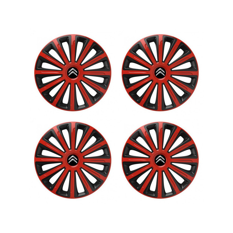 Puklice 15 TREND red and black pre Citroen na ocelové disky. Pre kolesá o veľkosti R15 so živicovými samolepkami Citroen.Destinatar :