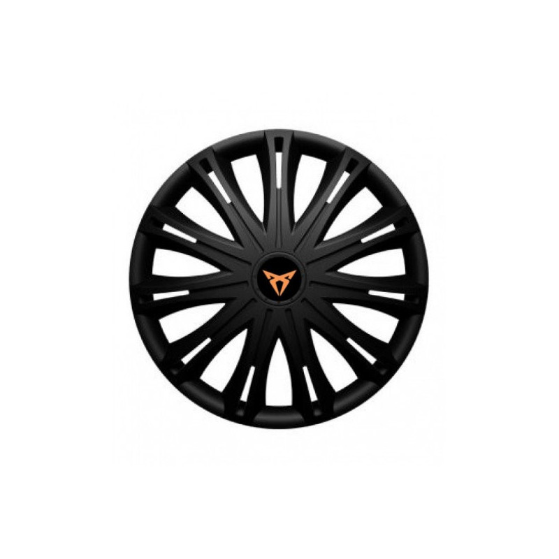Puklice 16 SPARK BLACK pre Cupra na ocelové disky. Pre kolesá o veľkosti R16 so živicovými samolepkami Cupra.Destinatar :