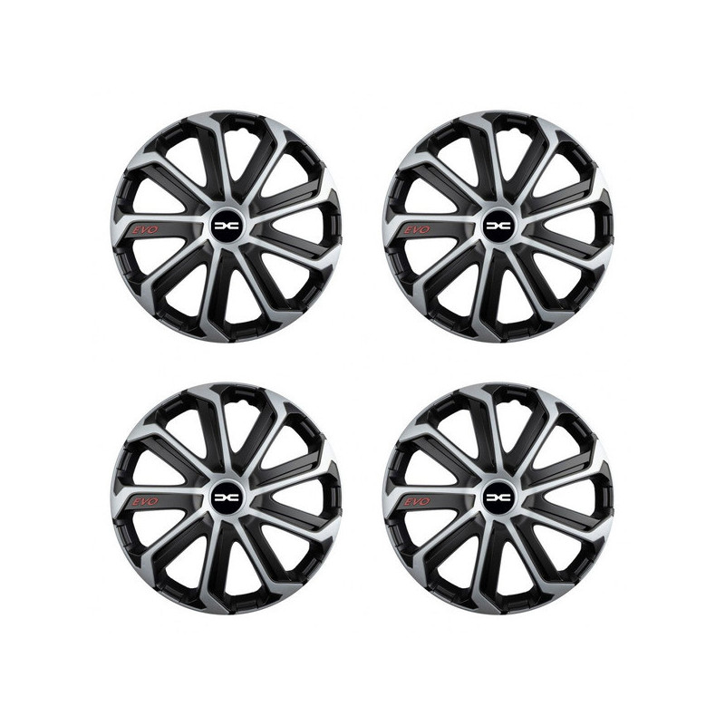 Puklice 15 Evo black&silver pre Dacia (nové logo) na ocelové disky. Pre kolesá o veľkosti R15 so živicovými samolepkami Dacia (nové logo).Destinatar :