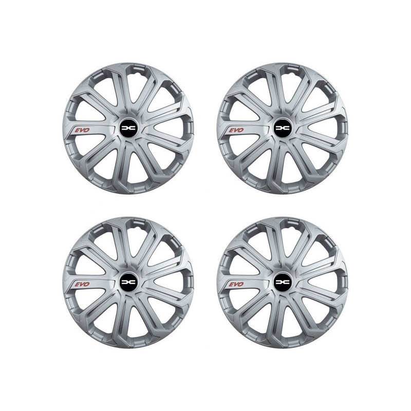Puklice 15 Evo silver pre Dacia (nové logo) na ocelové disky. Pre kolesá o veľkosti R15 so živicovými samolepkami Dacia (nové logo).Destinatar :