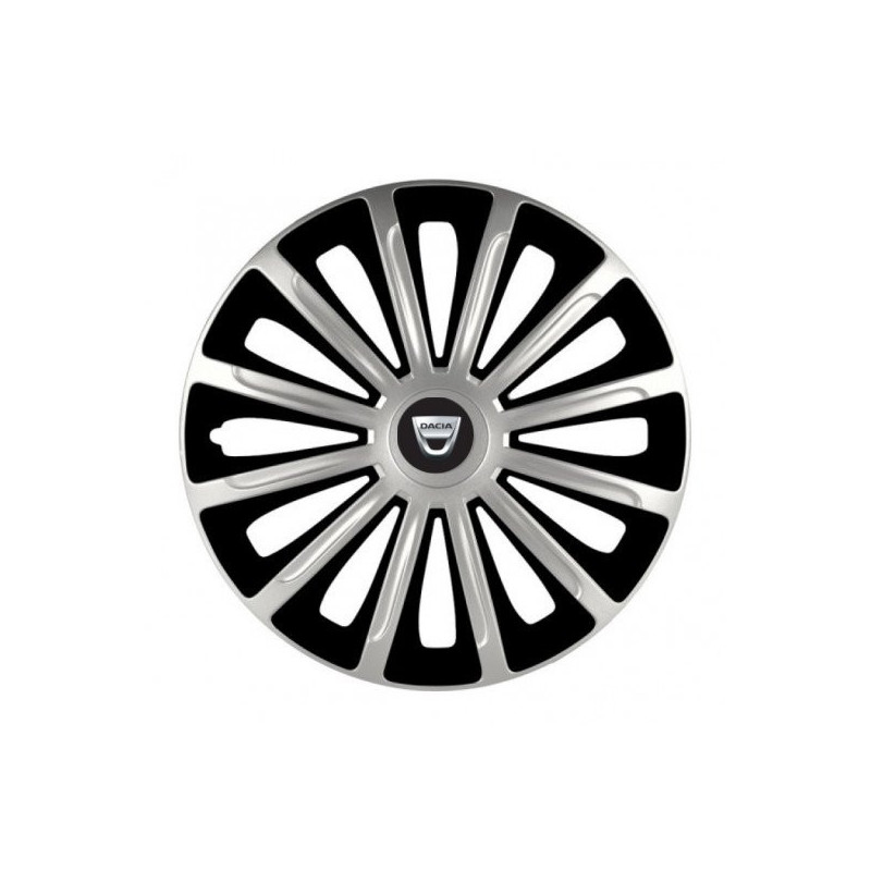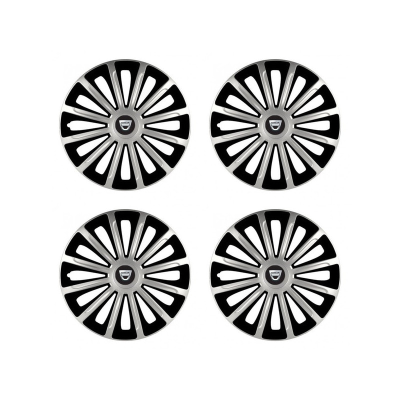 Puklice 16 TREND silver and black pre Dacia (staršie logo) na ocelové disky. Pre kolesá o veľkosti R16 so živicovými samolepkami Dacia (staršie logo).Destinatar :