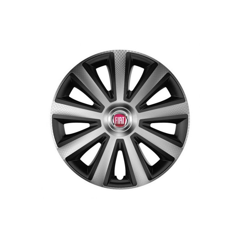 Puklice 14 Aviator carbon silver&black pre Fiat (červené) na ocelové disky. Pre kolesá o veľkosti R14 so živicovými samolepkami Fiat (červené).Destinatar :