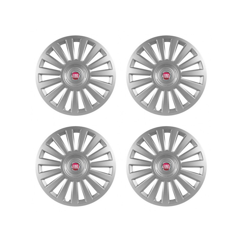 Puklice 14 Luxury pre Fiat (červené) na ocelové disky. Pre kolesá o veľkosti R14 so živicovými samolepkami Fiat (červené).Destinatar :