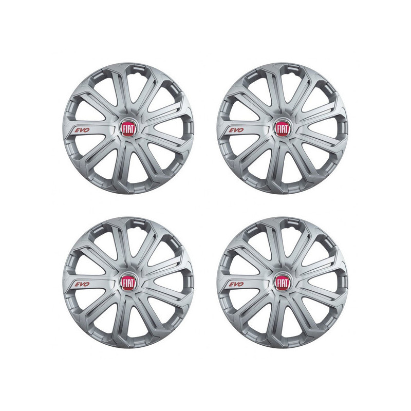 Puklice 15 Evo silver pre Fiat (červené) na ocelové disky. Pre kolesá o veľkosti R15 so živicovými samolepkami Fiat (červené).Destinatar :