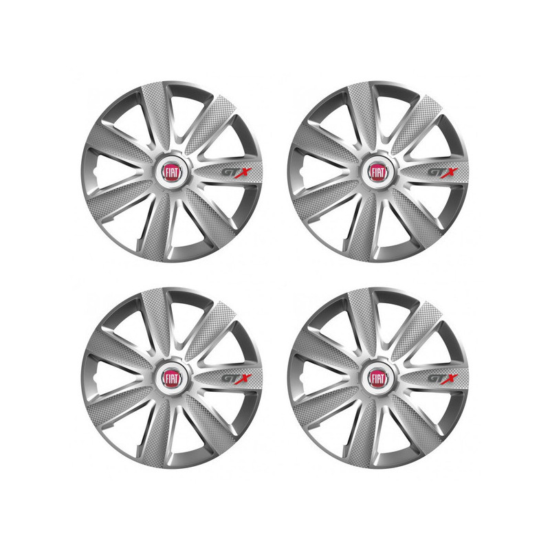 Puklice pre Fiat (červené) 15 GTX CARBON silver