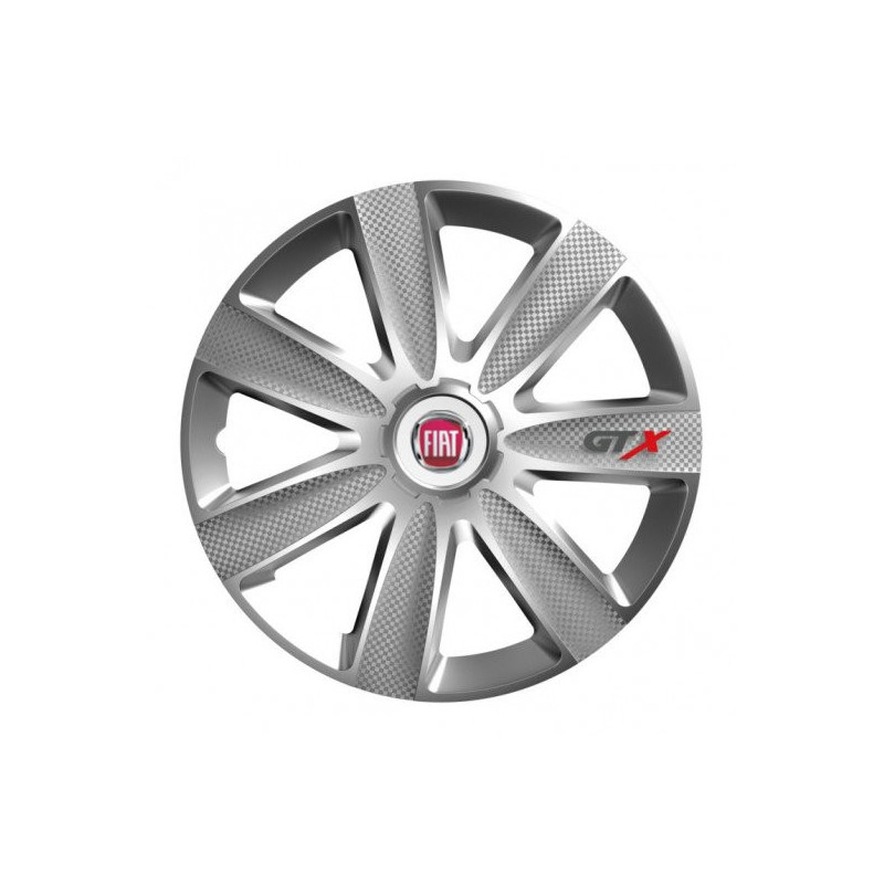 Puklice 16 GTX CARBON silver pre Fiat (červené) na ocelové disky. Pre kolesá o veľkosti R16 so živicovými samolepkami Fiat (červené).Destinatar :