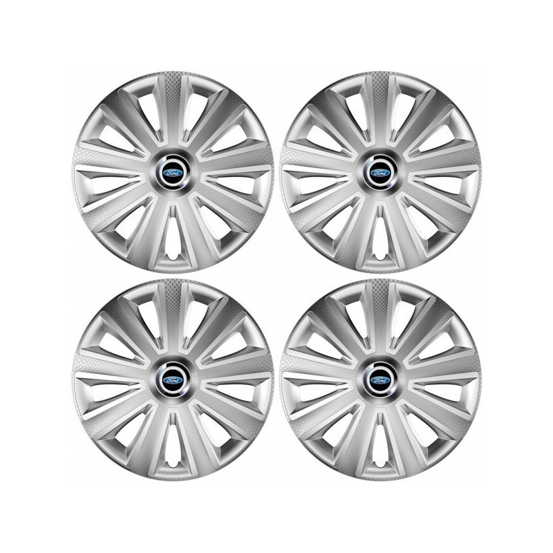 Puklice 14 Aviator carbon RC silver pre Ford na ocelové disky. Pre kolesá o veľkosti R14 so živicovými samolepkami Ford.Destinatar :