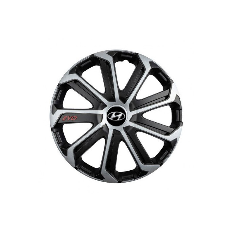 Puklice 14 Evo black&silver pre Hyundai na ocelové disky. Pre kolesá o veľkosti R14 so živicovými samolepkami Hyundai.Destinatar :