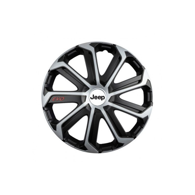 Puklice 16 Evo black&silver pre Jeep na ocelové disky. Pre kolesá o veľkosti R16 so živicovými samolepkami Jeep.Destinatar :