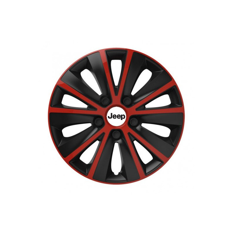 Puklice 16 RAPIDE red and black pre Jeep na ocelové disky. Pre kolesá o veľkosti R16 so živicovými samolepkami Jeep.Destinatar :