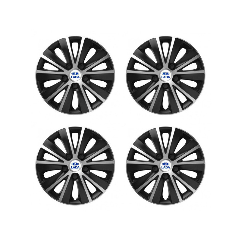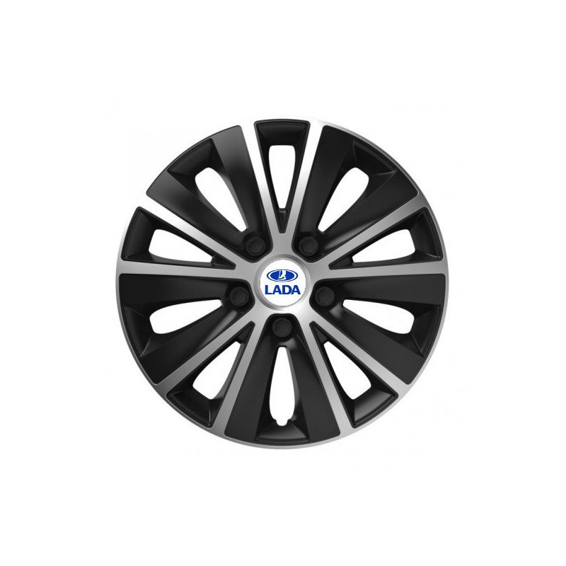 Puklice 14 RAPIDE silver and black pre Lada na ocelové disky. Pre kolesá o veľkosti R14 so živicovými samolepkami Lada.Destinatar :