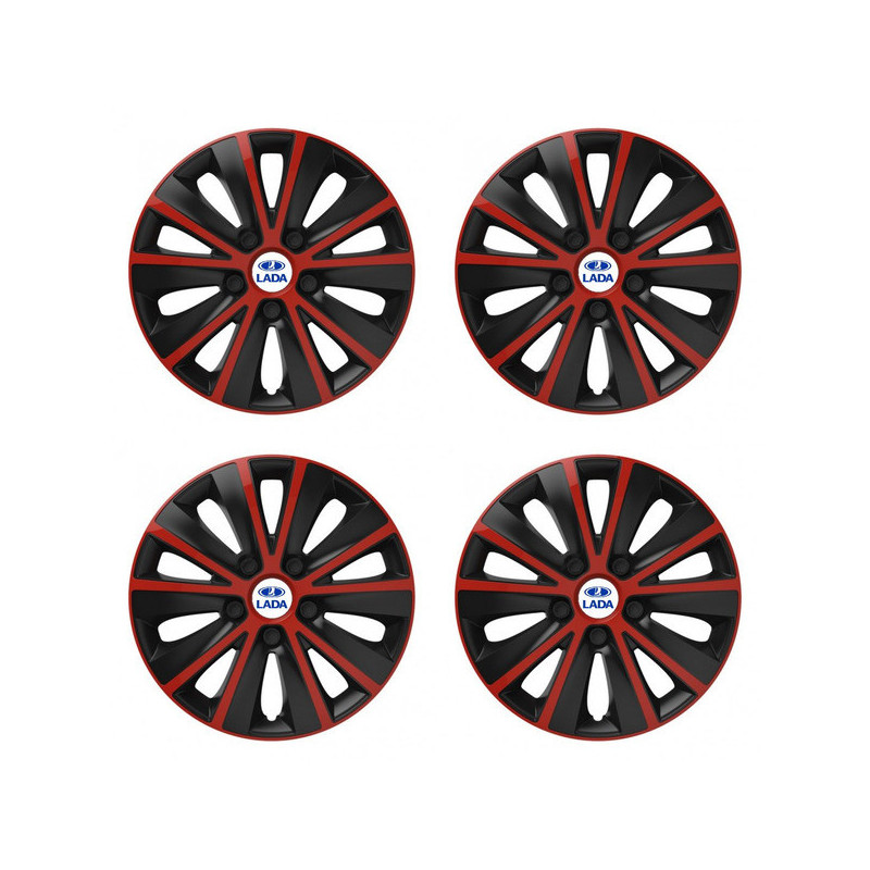 Puklice 15 RAPIDE red and black pre Lada na ocelové disky. Pre kolesá o veľkosti R15 so živicovými samolepkami Lada.Destinatar :