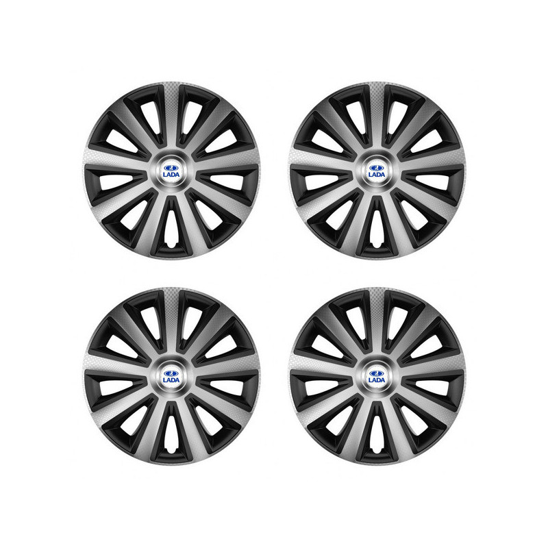 Puklice 16 Aviator carbon silver&black pre Lada na ocelové disky. Pre kolesá o veľkosti R16 so živicovými samolepkami Lada.Destinatar :