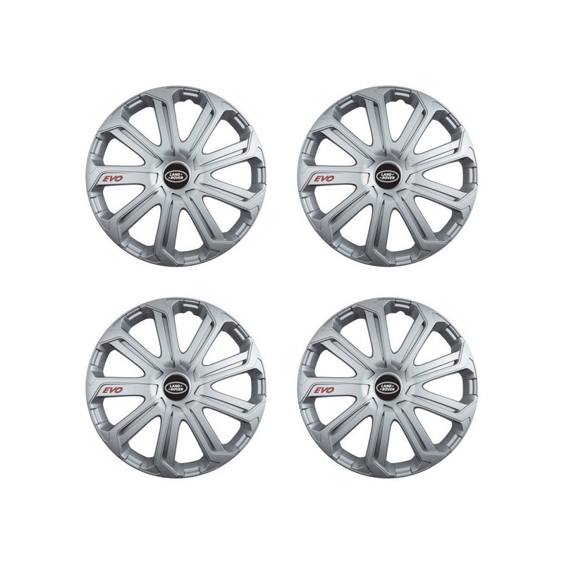 Puklice 15 Evo silver pre Land Rover na ocelové disky. Pre kolesá o veľkosti R15 so živicovými samolepkami Land Rover.Destinatar :