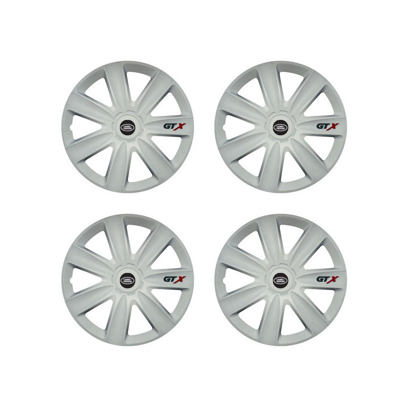 Puklice 15 GTX carbon white pre Land Rover na ocelové disky. Pre kolesá o veľkosti R15 so živicovými samolepkami Land Rover.Destinatar :