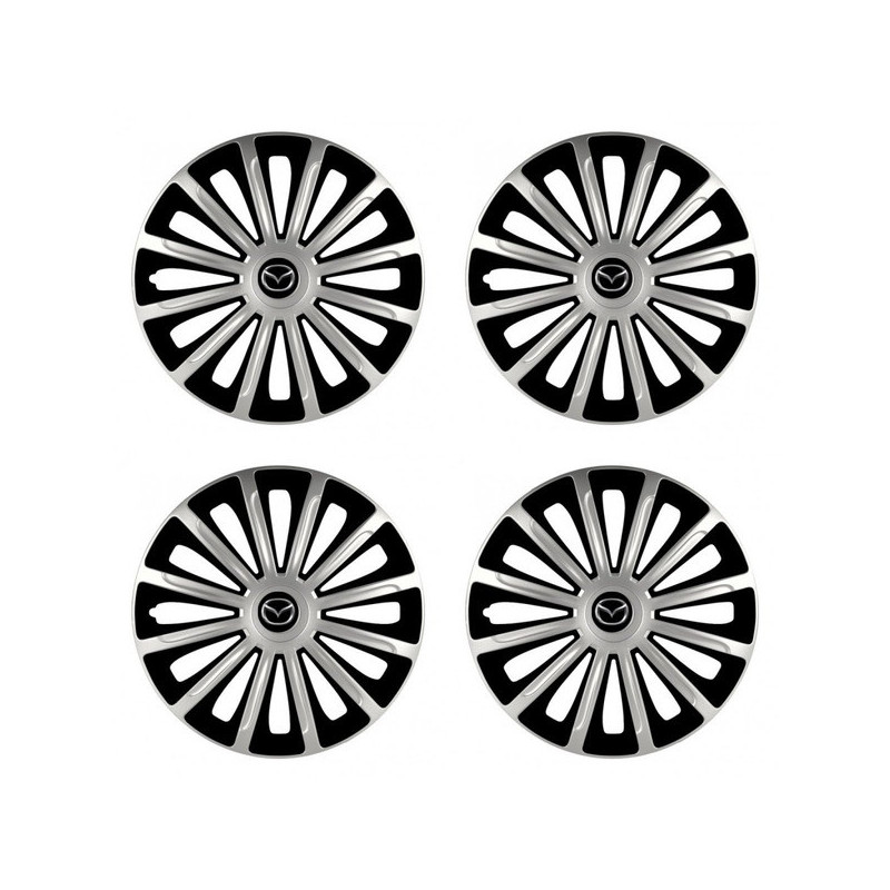 Puklice 15 TREND silver and black pre Mazda na ocelové disky. Pre kolesá o veľkosti R15 so živicovými samolepkami Mazda.Destinatar :