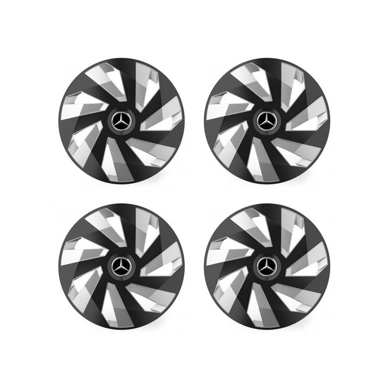 Puklice 16 Vector RC black and silver pre Mercedes na ocelové disky. Pre kolesá o veľkosti R16 so živicovými samolepkami Mercedes.Destinatar :