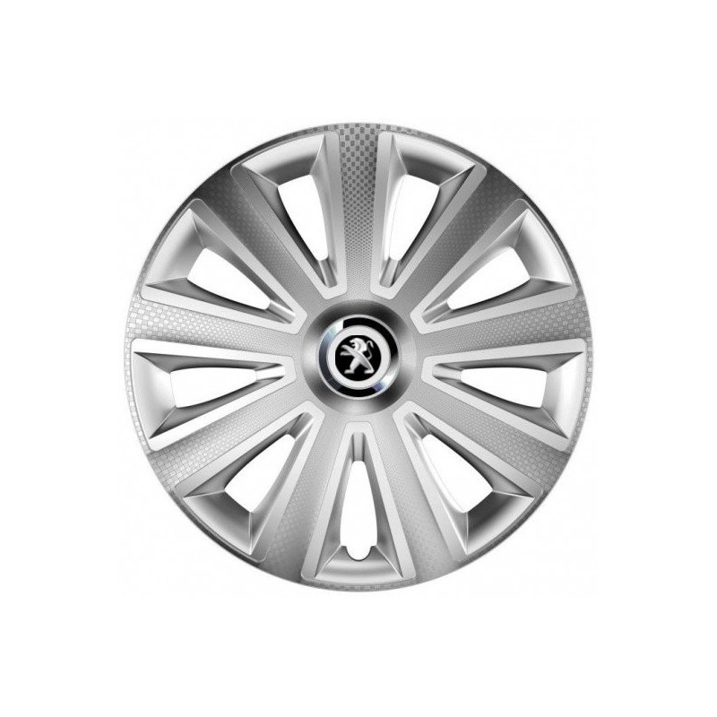 Puklice 15 Aviator carbon silver pre Peugeot (staršie logo) na ocelové disky. Pre kolesá o veľkosti R15 so živicovými samolepkami Peugeot (staršie logo).Destinatar :