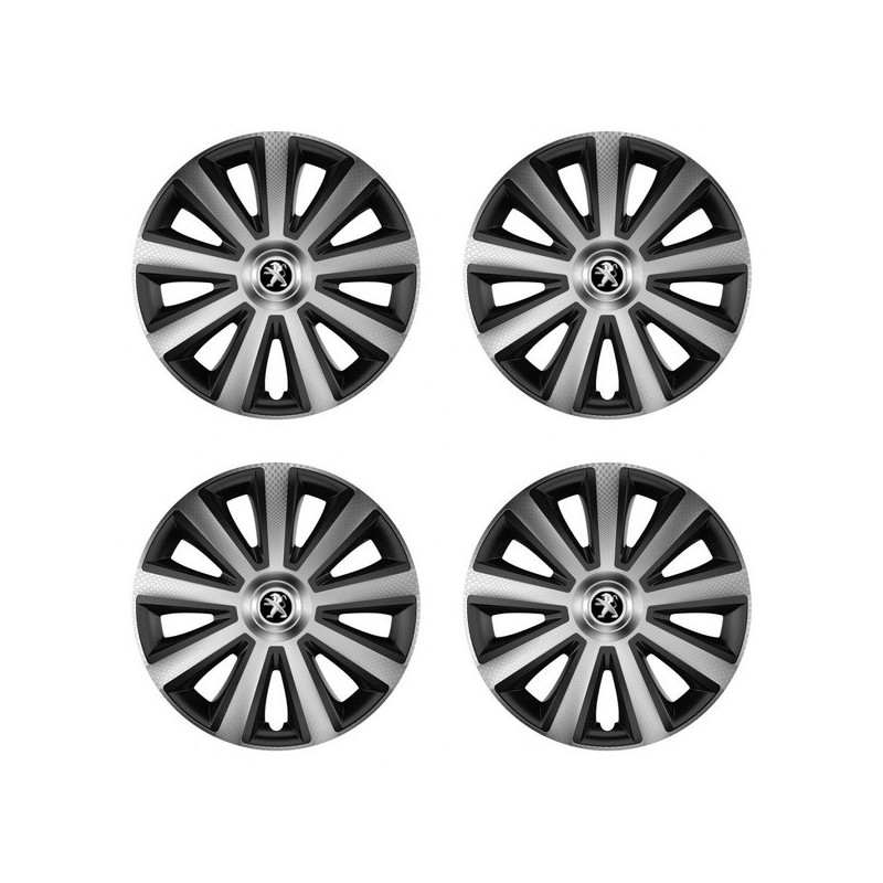 Puklice 15 Aviator carbon silver&black pre Peugeot (staršie logo) na ocelové disky. Pre kolesá o veľkosti R15 so živicovými samolepkami Peugeot (staršie logo).Destinatar :