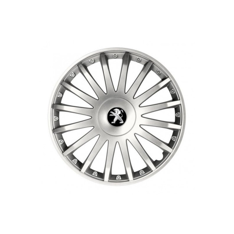 Puklice 15 CRYSTAL silver pre Peugeot (staršie logo) na ocelové disky. Pre kolesá o veľkosti R15 so živicovými samolepkami Peugeot (staršie logo).Destinatar :