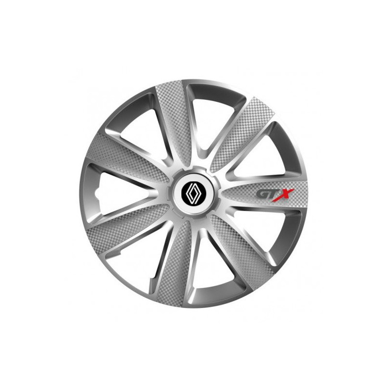 Puklice 16 GTX CARBON silver pre Renault (nové logo) na ocelové disky. Pre kolesá o veľkosti R16 so živicovými samolepkami Renault (nové logo).Destinatar :