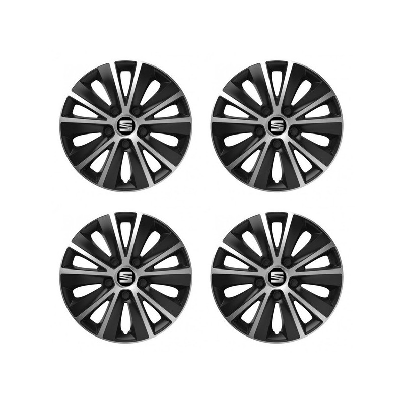 Puklice 15 RAPIDE silver and black pre Seat na ocelové disky. Pre kolesá o veľkosti R15 so živicovými samolepkami Seat.Destinatar :