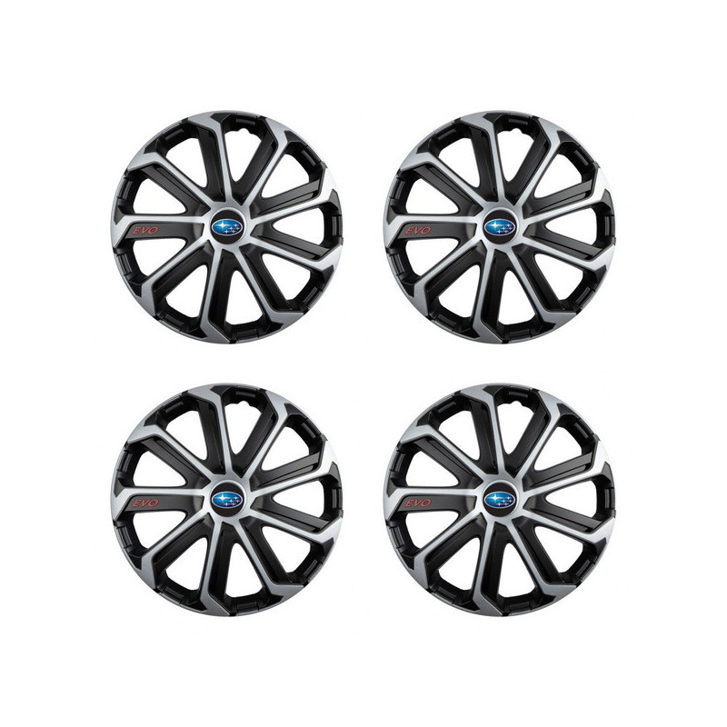 Puklice 15 Evo black&silver pre Subaru na ocelové disky. Pre kolesá o veľkosti R15 so živicovými samolepkami Subaru.Destinatar :
