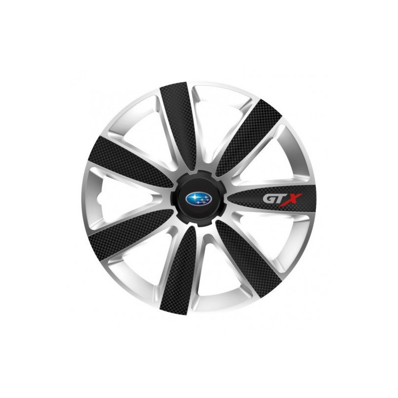 Puklice 15 GTX CARBON silver/black pre Subaru na ocelové disky. Pre kolesá o veľkosti R15 so živicovými samolepkami Subaru.Destinatar :