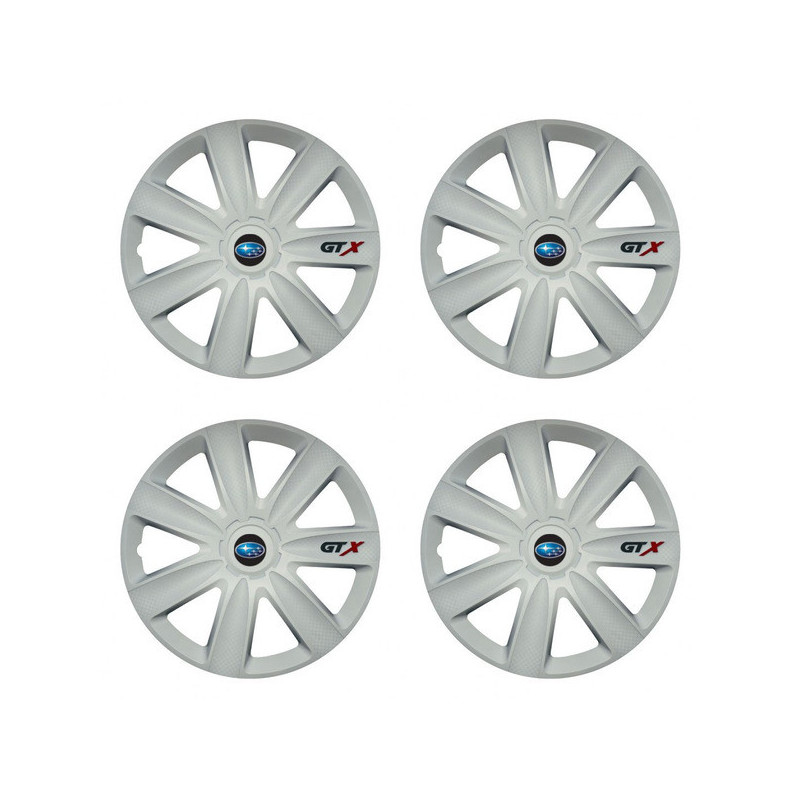 Puklice 15 GTX carbon white pre Subaru na ocelové disky. Pre kolesá o veľkosti R15 so živicovými samolepkami Subaru.Destinatar :