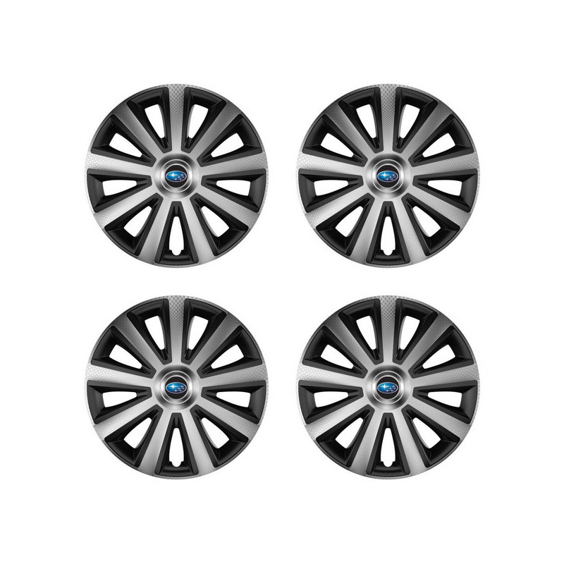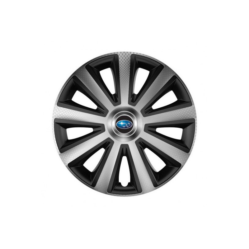 Puklice 16 Aviator carbon silver&black pre Subaru na ocelové disky. Pre kolesá o veľkosti R16 so živicovými samolepkami Subaru.Destinatar :