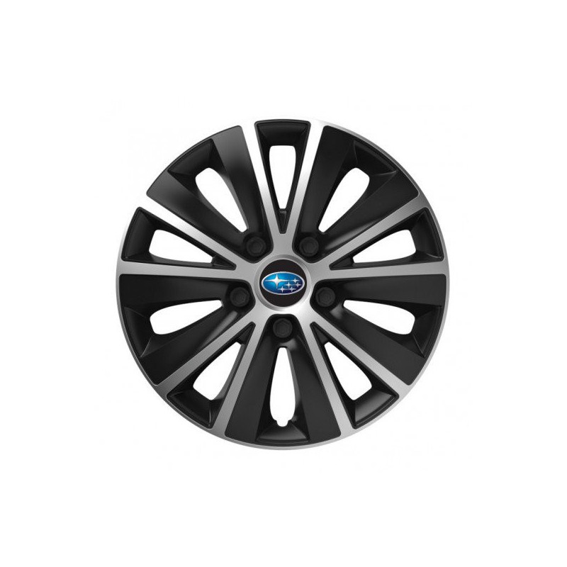 Puklice 16 RAPIDE silver and black pre Subaru na ocelové disky. Pre kolesá o veľkosti R16 so živicovými samolepkami Subaru.Destinatar :