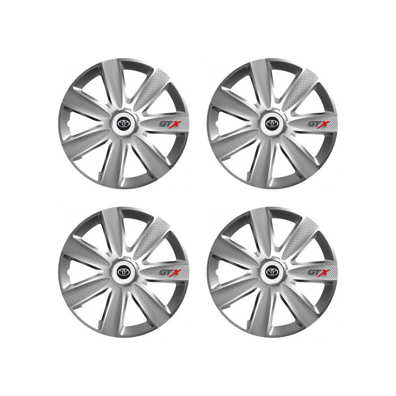 Puklice 14 GTX CARBON silver pre Toyota na ocelové disky. Pre kolesá o veľkosti R14 so živicovými samolepkami Toyota.Destinatar :