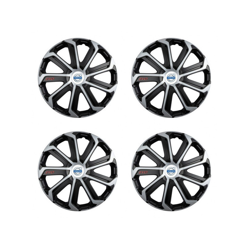 Puklice 15 Evo black&silver pre Volvo (biele) na ocelové disky. Pre kolesá o veľkosti R15 so živicovými samolepkami Volvo (biele).Destinatar :