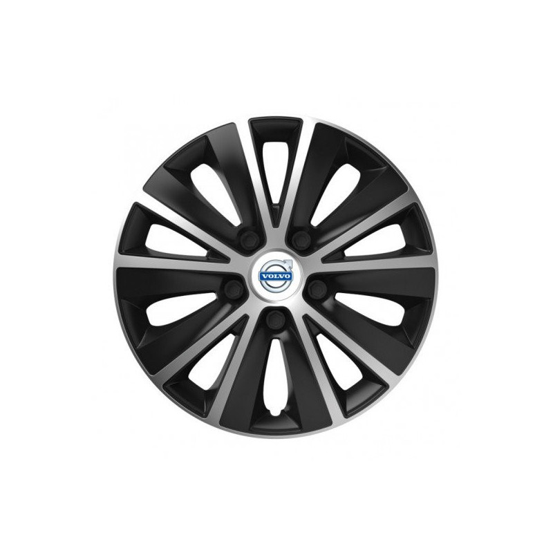 Puklice 15 RAPIDE silver and black pre Volvo (biele) na ocelové disky. Pre kolesá o veľkosti R15 so živicovými samolepkami Volvo (biele).Destinatar :