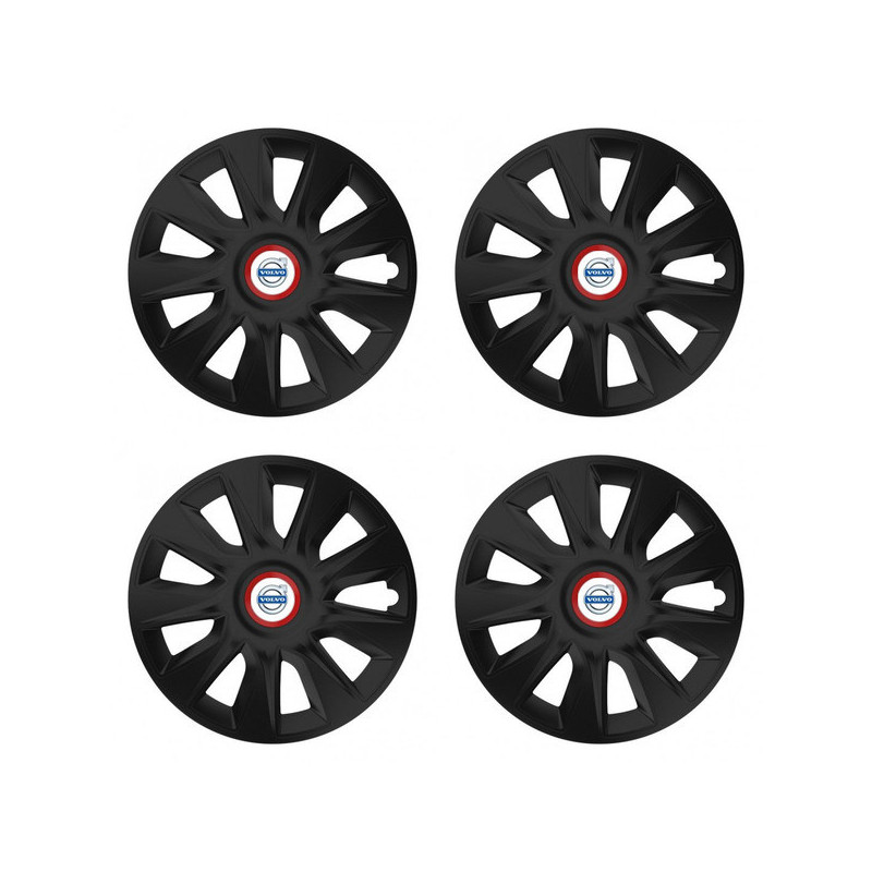 Puklice 15 STRATOS RR black pre Volvo (biele) na ocelové disky. Pre kolesá o veľkosti R15 so živicovými samolepkami Volvo (biele).Destinatar :