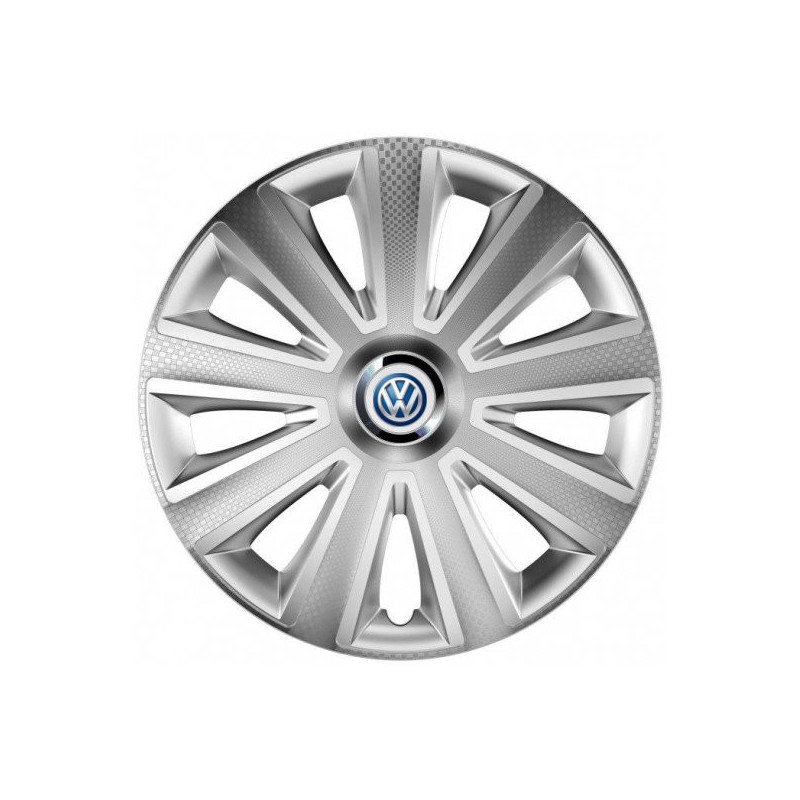 Puklice 15 Aviator carbon silver pre VW (modré) na ocelové disky. Pre kolesá o veľkosti R15 so živicovými samolepkami VW (modré).Destinatar :