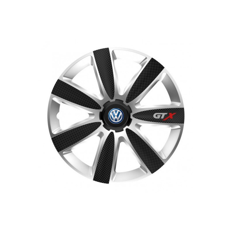 Puklice 15 GTX CARBON silver/black pre VW (modré) na ocelové disky. Pre kolesá o veľkosti R15 so živicovými samolepkami VW (modré).Destinatar :