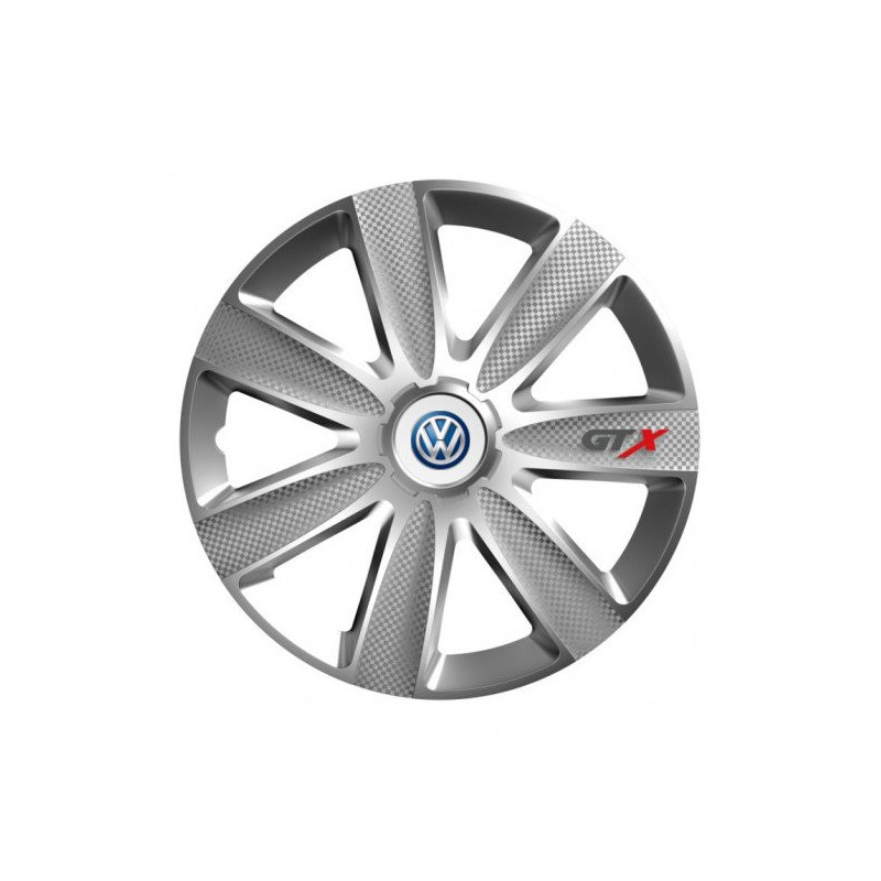 Puklice 16 GTX CARBON silver pre VW (modré) na ocelové disky. Pre kolesá o veľkosti R16 so živicovými samolepkami VW (modré).Destinatar :