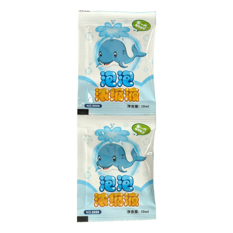 V súprave nájdete nádobu na bublinkovú kvapalinu, ktorá sa má do strojčeka namontovať, ako aj dve vrecúška s pripravenou kvapalinou. Táto zásoba vystačí na hodiny zábavy!
