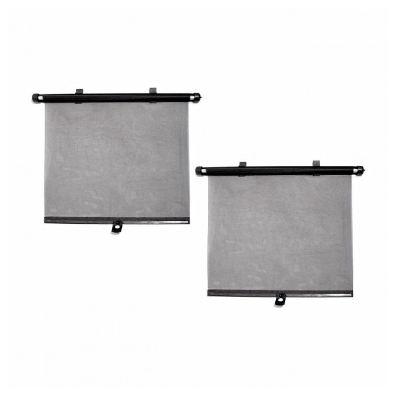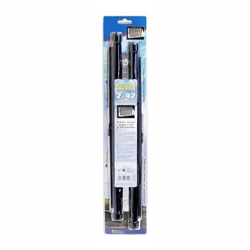 Určené k montáži na zadné bočné okná automobilu, pripevnenie nasunutím na hornú hranu bočného okna, alebo priloženými prísavkami. Roletku možno vo vysunutej polohe fixovať zaháknite za prísavku a použitím aretácie. Spôsob perforácie materiálu zaisťuje absorpciu cca 70% slnečných lúčov Materiál polyester, sada 2 ks, s prísavkami, Veľkosť vytiahnuté roletky 42 x 55 cm, šírka celej roletky vrátane uchytenia: 46 cm.
