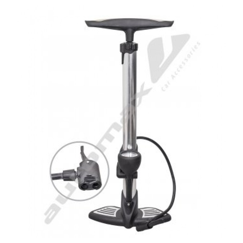 Vysoko kvalitná pumpa s tlakomerom. Pumpa je vyrobený z hliníka. Koniec vybavený dvoma otvormi pre ventily s rôznymi priemermi. Hmotnosť pumpy 0,68kg. Veľmi silná!