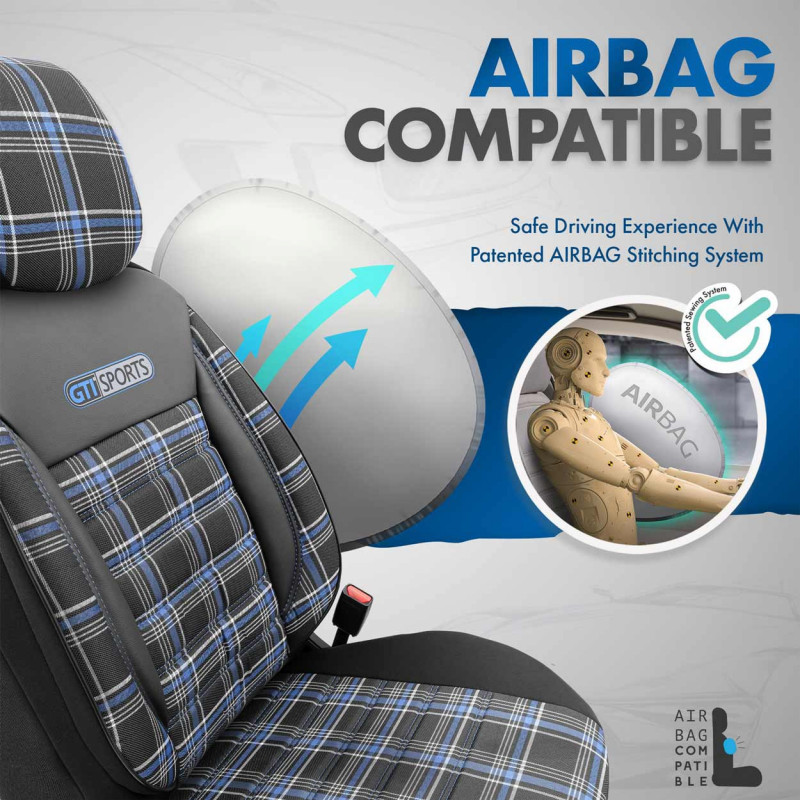 Štandardné poťahy majú certifikovaný šev AIRBAGový, vďaka čomu sú vhodné pre autá s bočnými airbagmi v sedadlách, ako aj pre štandardné sedadlá. Vďaka použitiu špeciálneho švu pokrývajú sedadlá úplne bez toho, aby narúšali prácu AIRBAGOV.